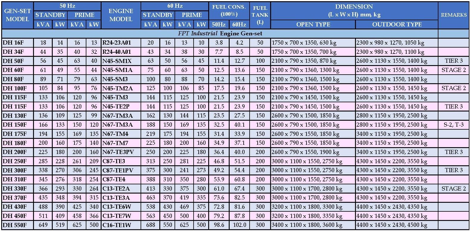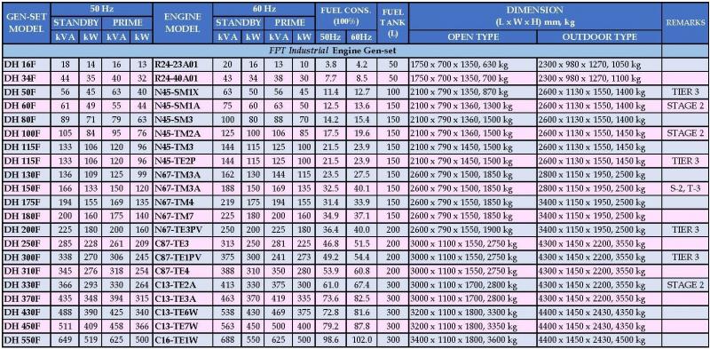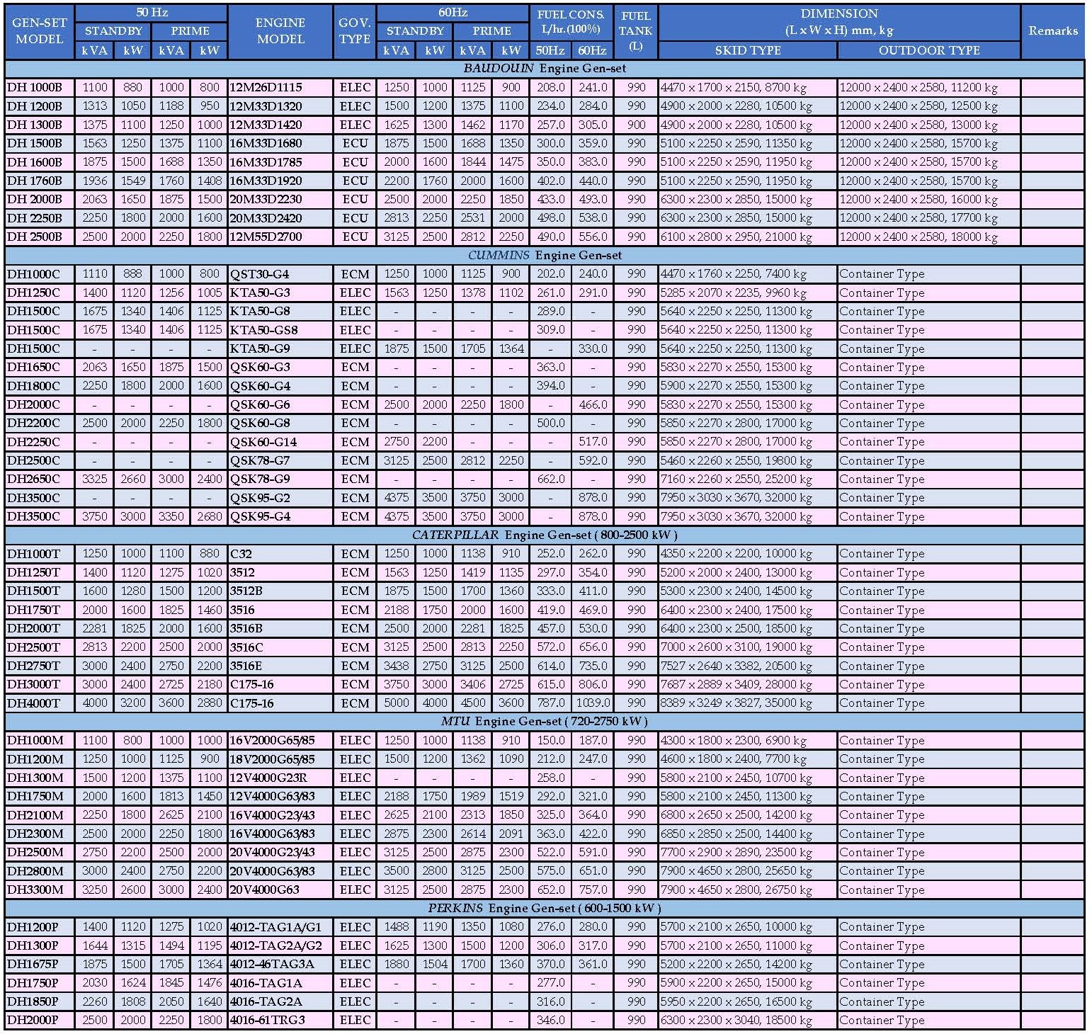 * Model: B - BAUDOUIN / C - Cummins / T - Caterpillar / M - MTU / P - Perkins Engines