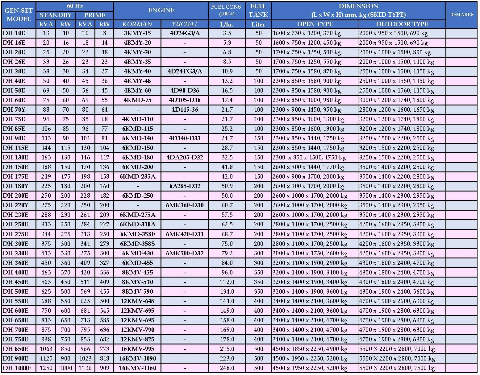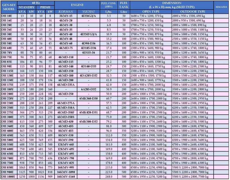 * MODEL : E - KORMAN / Y - YUCHAI Engines