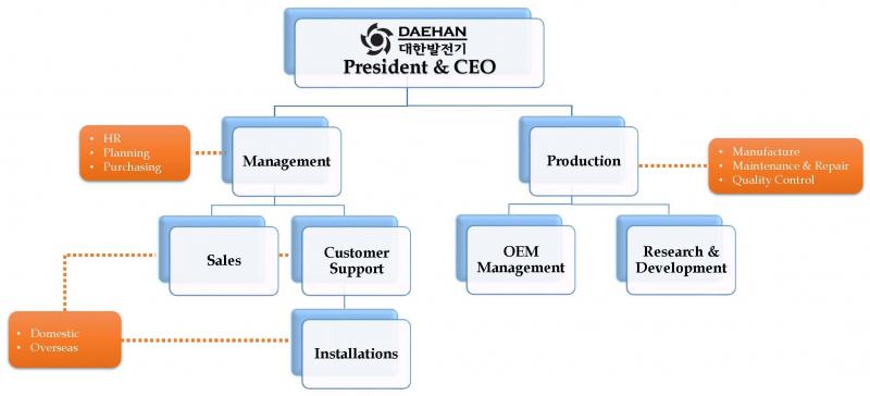 | 2002.01 | Company title changed to DAEHAN GENERATOR Co., Ltd., due to termination of DAEWOO HEAVY INDUSTRIAL Co., Ltd. 대우 발전기 사업종료로 '대한발전기'로 상호 변경 |